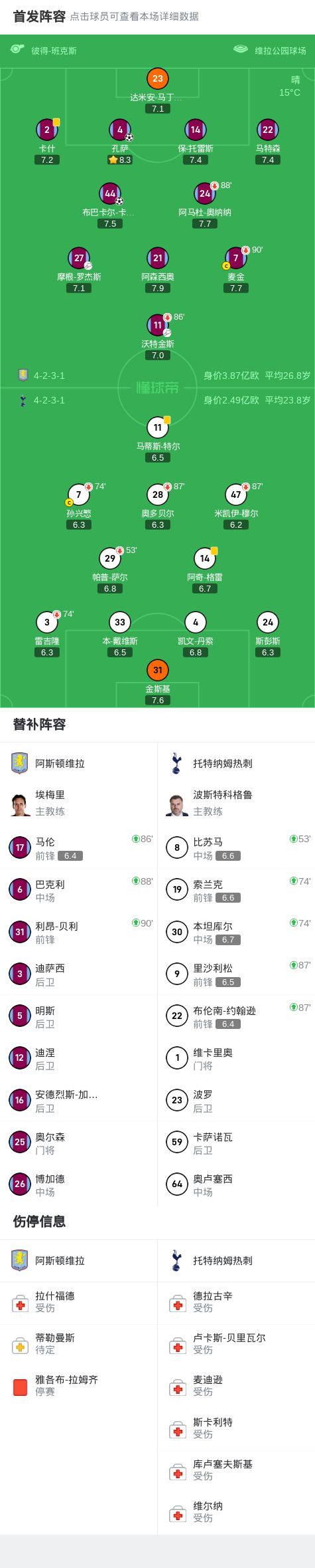 劍南春|維拉2-0熱刺,孔薩破門,卡馬拉斬獲英超聯(lián)賽首球