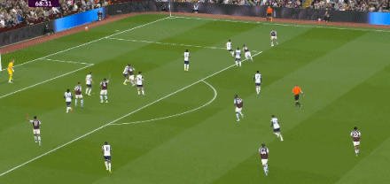 第59分鐘,沃特金斯頭球攻門,孔薩順勢(shì)打門入網(wǎng)!維拉1-0熱刺