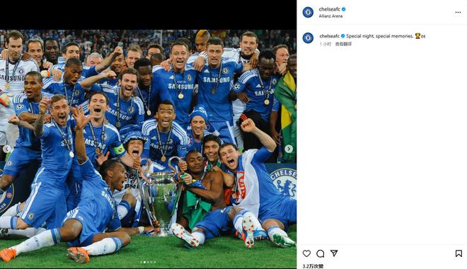 切爾西官推:慕尼黑2012(13年前的今天2012.5.19切爾西首奪歐冠)