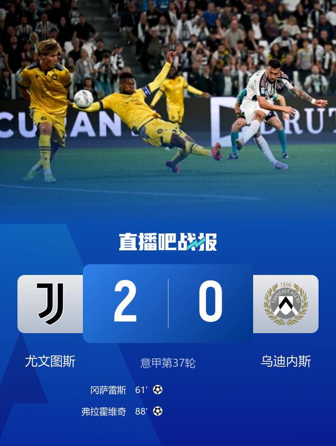意甲第37輪,尤文圖斯2-0烏迪內(nèi)斯,掌握爭四主動權(quán),岡薩雷斯、弗拉霍維奇進(jìn)球。