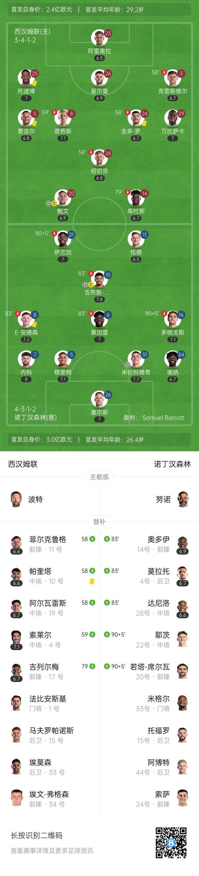 傷停補時11分鐘。全場比賽結束,西漢姆聯(lián)1-2諾丁漢森林。