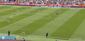 第80分鐘,西漢姆打出流暢配合,索萊爾橫傳,隊友的打門被封堵。↓
