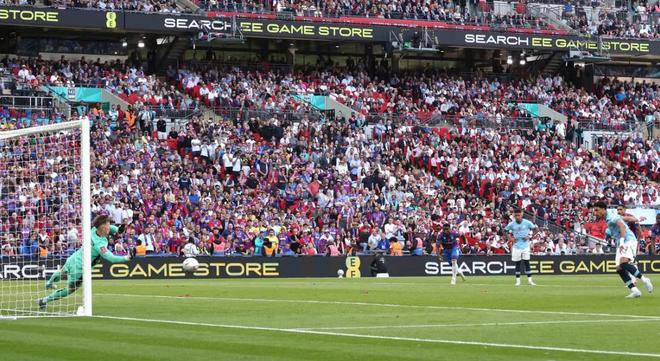 不過,盡管水晶宮在先進(jìn)球的足總杯比賽中已連續(xù)5場(chǎng)不?。ㄉ洗问Ю?023年1月1-2負(fù)南安普頓),但0.74的預(yù)期進(jìn)球仍落后于曼城的2.23,危機(jī)尚未解除。隨后,當(dāng)米切爾禁區(qū)內(nèi)放倒席爾瓦時(shí),天平似乎倒向曼城。曼城本賽季足總杯第4次獲點(diǎn)(賽事最多),但馬爾穆什主罰的點(diǎn)球被亨德森飛身撲出。亨德森由此成為2010年切赫(切爾西vs樸茨茅斯)后首位在足總杯決賽常規(guī)時(shí)間撲點(diǎn)的門將。水晶宮則成為1988年溫布爾登(決賽撲點(diǎn)擊敗利物浦)之后,首支奪冠的南倫敦球隊(duì)。