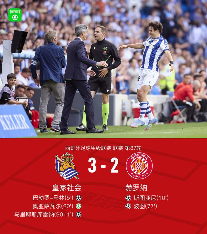 皇家社會(huì)3-2赫羅納,馬里耶斯庫(kù)雷納絕殺、奧亞薩瓦爾傳射