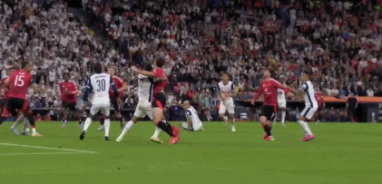 第3分鐘,馬奎爾和范德芬接觸后倒地,主裁判罰后者犯規(guī)
