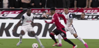 第11分鐘,馬奎爾解圍沒踢遠,熱刺連續(xù)打門均被擋