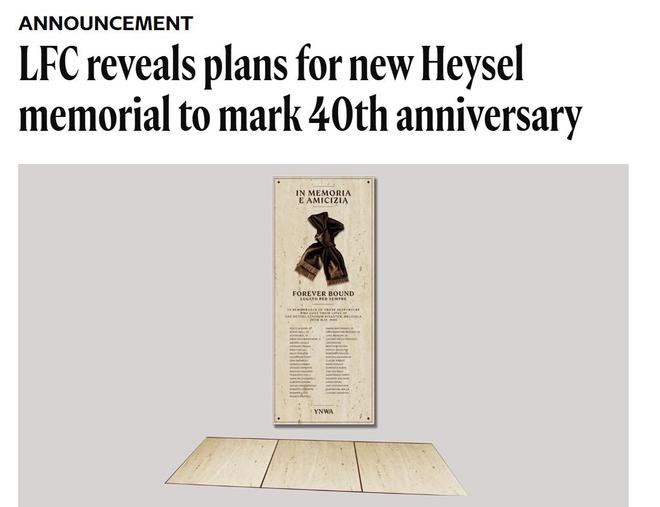 「永恒紐帶」利物浦將建造全新海瑟爾紀(jì)念碑,以紀(jì)念災(zāi)難40周年