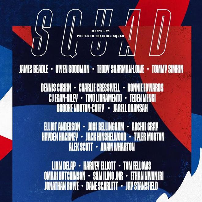 中場(chǎng):埃利奧特-安德森(諾丁漢森林)、喬布-貝林厄姆(桑德蘭)、阿奇-格雷(熱刺)、哈克尼(米德?tīng)査贡?、杰克-欣謝爾伍德(布萊頓)、莫頓(利物浦)、亞歷克斯-斯科特(伯恩茅斯)、亞當(dāng)-沃頓(水晶宮)