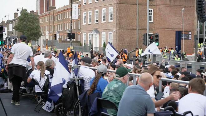 歐聯(lián)杯奪冠游行還有2小時開始,大量熱刺球迷已經(jīng)開始等候