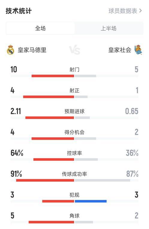 占優(yōu)!皇馬半場1-0皇社數(shù)據(jù):射門10-5,射正4-1,控球率64%-36%