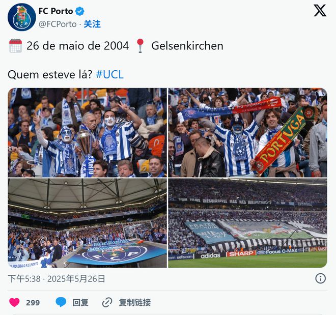 此外,波爾圖的X官方賬號,也發(fā)帖紀(jì)念了球隊21年前的偉大成就。