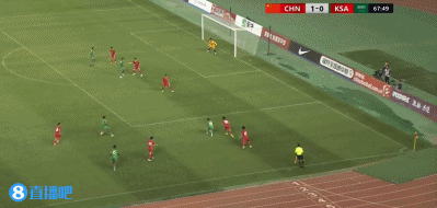 第67分鐘,沙特球員右路突破倒三角傳球,中路插上球員搶點破門,U16國足1-1沙特。