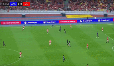 第71分鐘,塞格契奇直塞,芒芒倫單刀破門(mén),曼聯(lián)0-1東盟全明星!