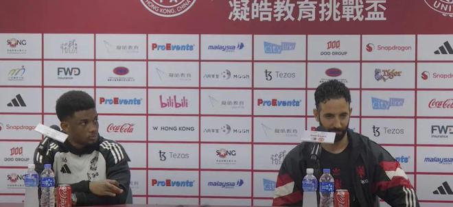 北京時(shí)間5月30日英超日?qǐng)?bào)宣報(bào)20:00,曼聯(lián)將在友誼賽中對(duì)陣中國(guó)香港。賽前,曼聯(lián)主帥阿莫林?jǐn)y紅魔攻擊手阿瑪?shù)?迪亞洛出席了新聞發(fā)布會(huì)。在新聞發(fā)布會(huì)上,不少媒體問(wèn)到了加納喬的去留問(wèn)題,阿莫林聽(tīng)到這一問(wèn)題之后忍不住捂嘴偷笑。而與他一起出席新聞發(fā)布會(huì)的阿瑪?shù)?迪亞洛則態(tài)度迥然不同。