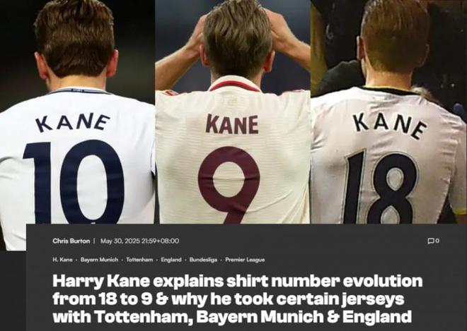 5月30日英超日報宣報訊 英格蘭球星凱恩近日接受采訪時,談到了自己球衣號碼從18號到10號、9號的演變原因。