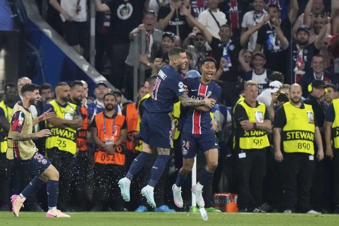 比賽開始后不久,大巴黎便完全占據(jù)了主動。第12分鐘,國米防線出現(xiàn)漏洞,杜埃助攻阿什拉夫推空門得手,1比0,這也是摩洛哥人在歐冠賽場直接參與的第21粒進(jìn)球。