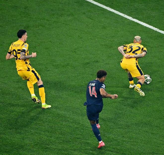 8分鐘之后,大巴黎擴(kuò)大領(lǐng)先優(yōu)勢(shì),登貝萊左路長(zhǎng)傳,大禁區(qū)右側(cè)得球的杜埃,直接起腳打門,皮球打在迪馬爾科的身上折射入網(wǎng),靠著杜埃的傳射建功,巴黎將領(lǐng)先優(yōu)勢(shì)擴(kuò)大到了2球,第37分鐘國(guó)米完成了開場(chǎng)后最有威脅的一次進(jìn)攻,右側(cè)角球開出后,小圖拉姆的頭球攻門擦著立柱出了底線。