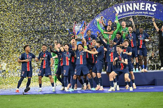 6月1日歐冠日報(bào)宣報(bào)訊 歐冠決賽,巴黎5-0國米,捧起冠軍獎(jiǎng)杯。