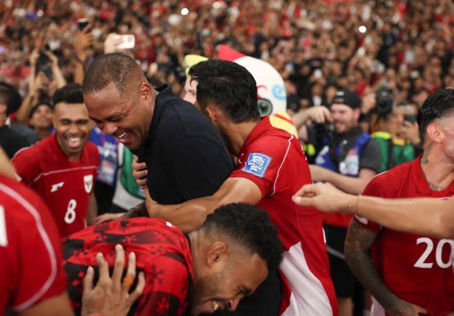 6月5日,印度尼西亞隊(duì)主教練克魯伊維特(左)在賽后慶祝。