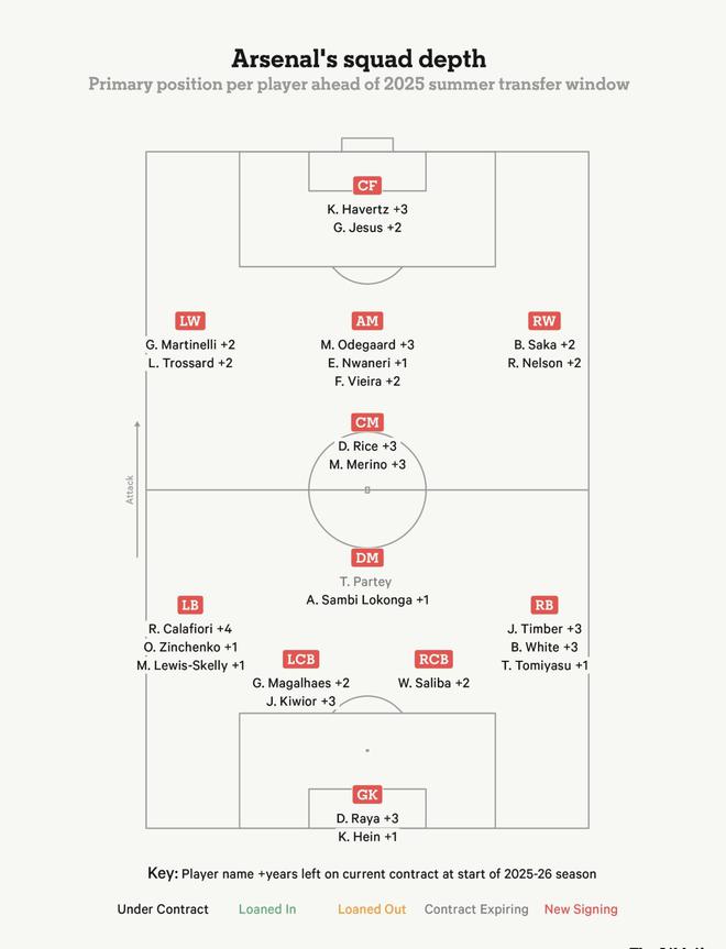 今年夏天,阿森納的焦點(diǎn)將主要集中在新援引進(jìn)上——但要想再次沖擊冠軍,現(xiàn)有球員的調(diào)整同樣關(guān)鍵。在補(bǔ)強(qiáng)陣容的同時,續(xù)約與出售工作對確保平穩(wěn)過渡至新賽季也至關(guān)重要。以下是The Athletic對2025-26賽季阿森納一線隊(duì)成員未來前景的全面分析。