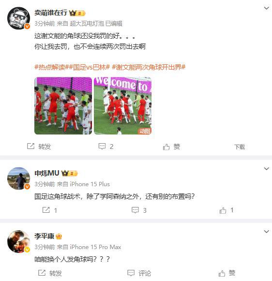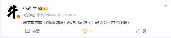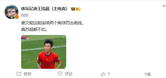 06月10日國足日報宣報訊 國足vs巴林比賽,謝文能連續(xù)2次角球直接罰出界,眾多媒體人表示太不能理解。