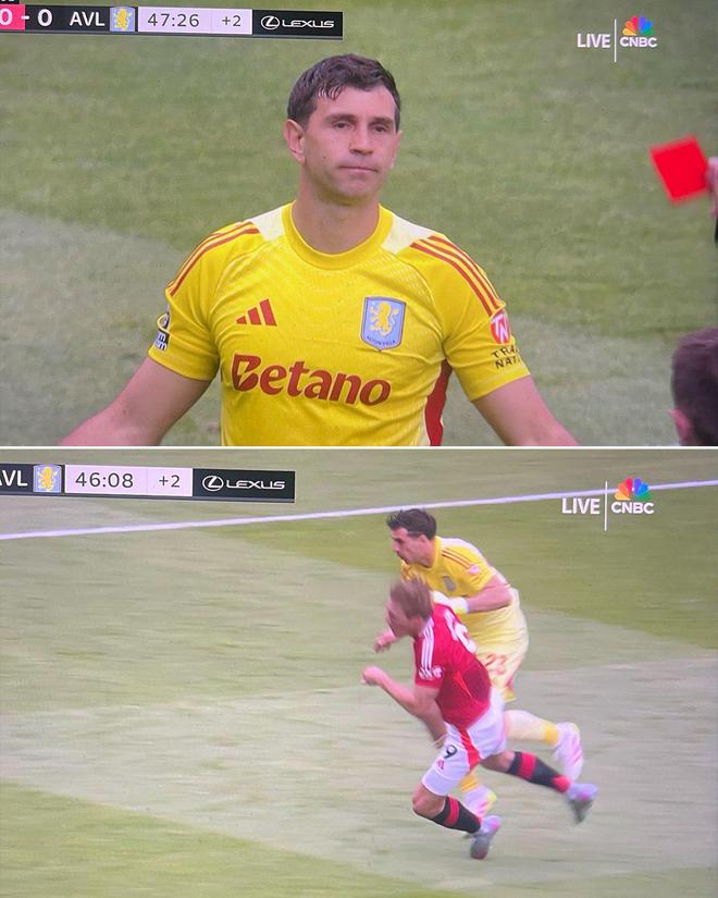 阿根廷國門的另一個問題,是他在維拉的潛在告別戰(zhàn)——做客老特拉福德對陣曼聯(lián)時染紅。英超最后一輪的這張紅牌,不僅讓維拉輸球無緣歐冠,也至少將讓他個人在下賽季開始時停賽1場,甚至可能被禁賽3場!