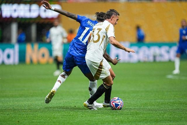 切爾西與洛杉磯FC的比賽,是英格蘭和美國俱樂部間首次正式交手,洛杉磯FC是第32支也是最后一支獲得世俱杯參賽資格的球隊。開賽后切爾西打出了控球與邊路優(yōu)勢,發(fā)動數(shù)次威脅進攻,但雅克松、馬杜埃凱和帕爾默的射門均被表現(xiàn)神勇的洛杉磯FC門將(前熱刺傳奇門神)洛里斯撲出。第34分鐘,切爾西終于抓住機會,杰克遜送出直傳,葡萄牙邊鋒內(nèi)托假動作晃開防守隊員,左腳抽射,巧射近角敲開洛里斯的十指關(guān)左腳抽射,先拔頭籌。落后的洛杉磯FC發(fā)起反擊,只可惜臨門一腳功夫欠佳。上半場切爾西1-0領(lǐng)先。