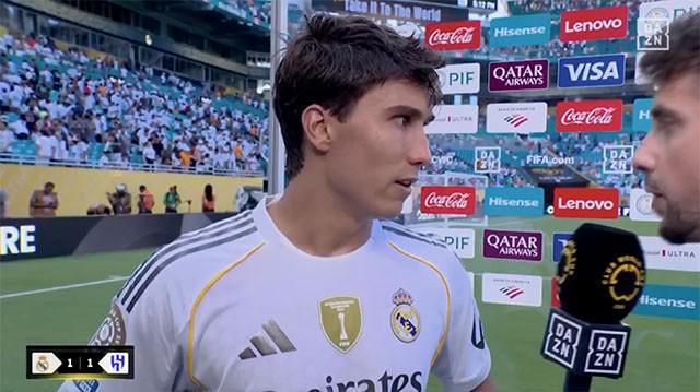 在世俱杯1-1戰(zhàn)平利雅得新月的比賽中,貢薩洛-加西亞為皇馬打破僵局,賽后他接受了DAZN的采訪。