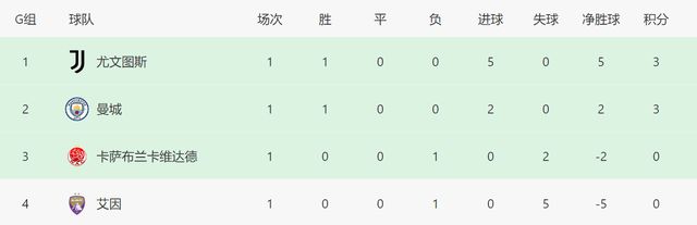 截至目前,G組首輪比賽已經(jīng)踢完,隨著尤文5-0大勝對(duì)手,他們也反超曼城,目前排名小組第一。下一輪比賽,尤文將對(duì)陣卡薩布蘭卡維達(dá)德,而曼城則踢阿爾艾因,2大豪門隨時(shí)能全勝,并提前小組出線。最后一輪比賽,尤文將對(duì)陣曼城,競(jìng)爭(zhēng)小組頭名。