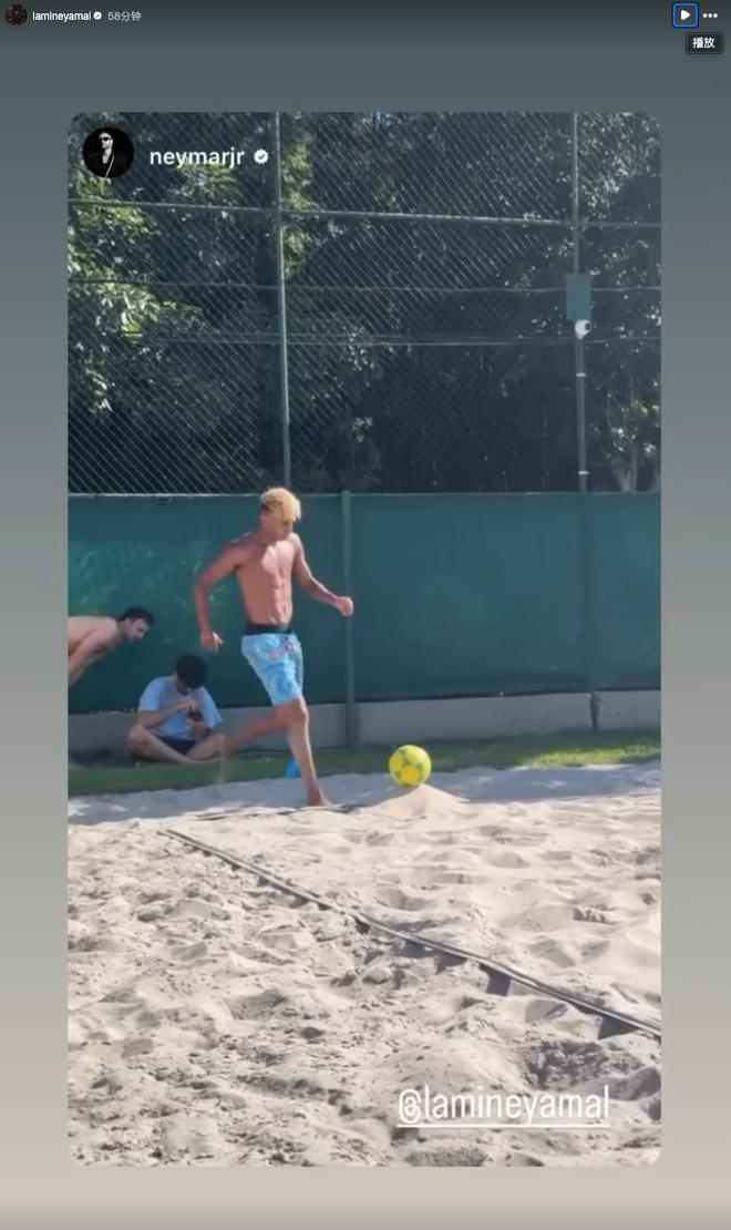 當(dāng)?shù)貢r(shí)間6月19日西甲日?qǐng)?bào)宣報(bào),內(nèi)馬爾在社交媒體發(fā)布了一段亞馬爾踢沙灘足球的視頻。