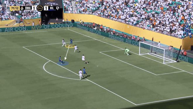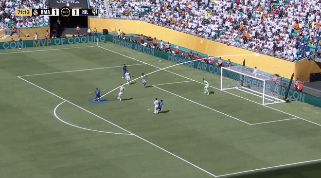 阿諾德雖積極爭頂,但羅德里戈對二點(diǎn)球的預(yù)判滯后,達(dá)瓦薩里輕松控球并得到洛迪策應(yīng)。