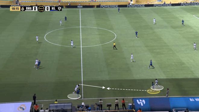 防守漏洞集中爆發(fā)在右路——利雅得新月精妙的邊路配合讓阿諾德和羅德里戈疲于應(yīng)對。問題根源在于:皇馬球員的站位往往存在幾碼偏差,或重復(fù)封堵已被隊(duì)友控制的傳球線路。