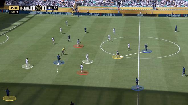 羅德里戈向內(nèi)收縮以保持陣型緊湊;當(dāng)洛迪轉(zhuǎn)移給魯本-內(nèi)維斯時,楚阿梅尼正盯防米林科維奇-薩維奇。