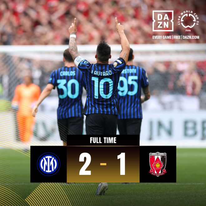傷停補時階段,另一位阿根廷球員挺身而出,下半時替補登場的20歲小將卡爾博尼補射絕殺,這是他在藍黑軍團一線隊打進的正式比賽首球。國際米蘭最終2比1逆轉(zhuǎn)浦和,送對手提前出局。浦和紅鉆也成為了本屆世俱杯第三支小組賽出局的球隊。截至目前,本屆世俱杯亞洲球隊還沒有取得過勝利,唯有利雅得新月從皇馬身上拿到了1分。