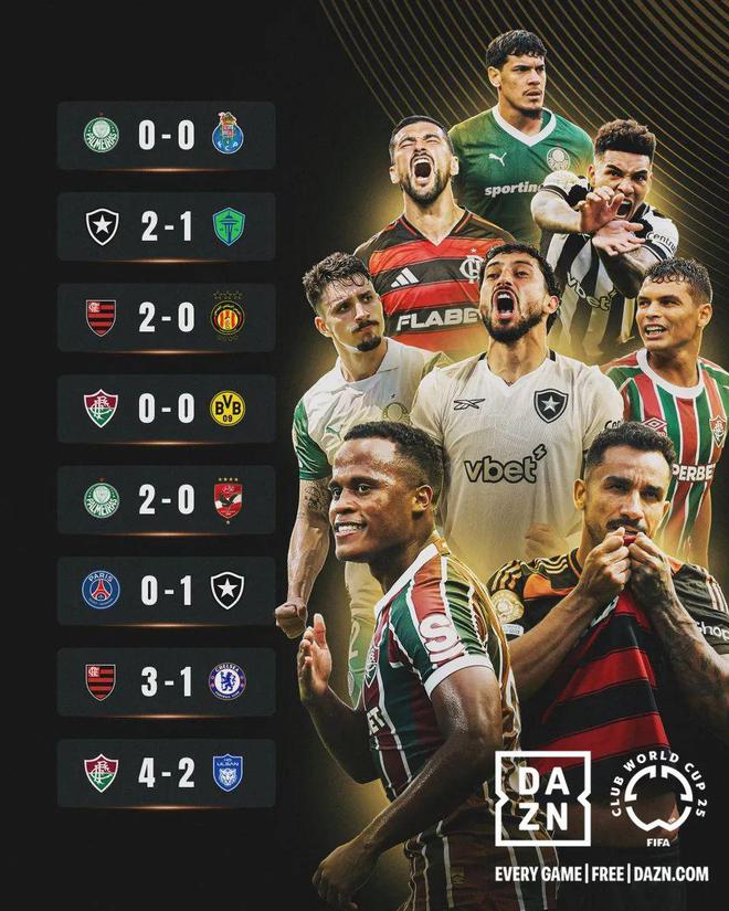 A組的帕爾梅拉斯先平葡超豪門波爾圖,又勝埃及勁旅開羅國民,位居小組第一;B組的博塔弗戈則是連克西雅圖海灣人以及歐冠冠軍巴黎圣日耳曼,兩連勝領(lǐng)跑該組;D組的弗拉門戈同樣兩戰(zhàn)全勝,分別在突尼斯希望和切爾西身上拿到了三分。