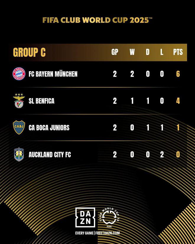 C組中,兩家歐洲豪門本菲卡和拜仁不出預(yù)料地雙雙取勝,南美百年豪門博卡青年已經(jīng)一只腳踏出了被淘汰的懸崖。