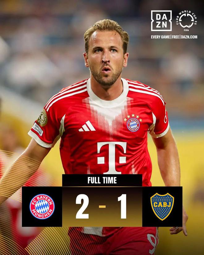 第18分鐘,持續(xù)施壓的拜仁打破僵局,萊默爾右路傳中,凱恩后點(diǎn)搶點(diǎn)鏟射破門,凱恩收獲了個人在世俱杯上的首個進(jìn)球。此后的整個上半場,拜仁在場面上占據(jù)絕對優(yōu)勢,控球率高達(dá)72%,博卡青年只能利用零星反擊周旋。
