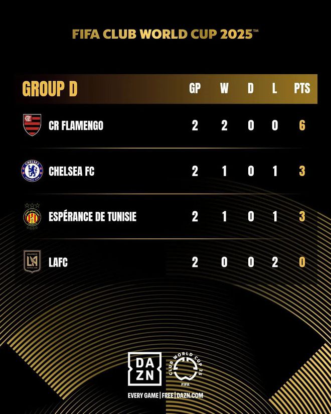 D組則是大爆冷門,切爾西遭弗拉門戈讓一追三,目送南美球隊(duì)提前晉級,洛杉磯FC遭遇了從地獄到天堂再到地獄的劇情,遺憾無緣淘汰賽。