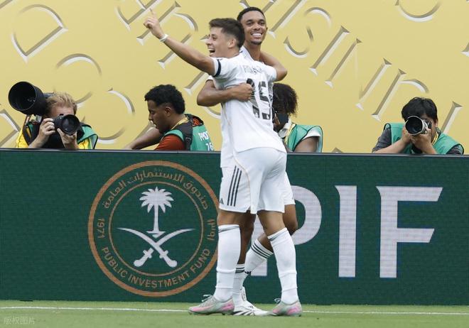 8分鐘后,皇馬右路反擊再來,阿諾德禁區(qū)角上精準(zhǔn)斜傳左側(cè),貢薩洛點(diǎn)球點(diǎn)處策應(yīng)橫傳做球,后排跟進(jìn)的居萊爾接球調(diào)整兩步冷靜推射得手,皇馬8分鐘連進(jìn)2球,半場結(jié)束球?qū)㈩I(lǐng)先優(yōu)勢擴(kuò)大到2:0。易邊再戰(zhàn),帕丘卡展開猛烈反撲,皇馬則是穩(wěn)穩(wěn)地打防守反擊,第56分鐘,帕丘卡右路壓上,卡布拉爾禁區(qū)角上45度角斜吊門前,一片混戰(zhàn)中,隆東倒地捅射,皮球擦著門柱外側(cè)出了底線,皇馬逃過一劫。