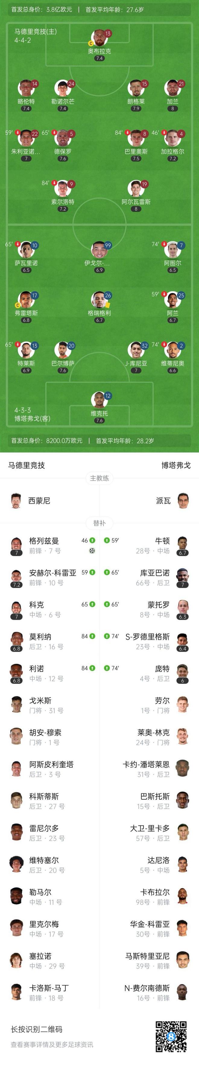 6月24日西甲日?qǐng)?bào)宣報(bào)訊 北京時(shí)間6月24日凌晨3時(shí),世俱杯小組賽B組第3輪,馬競(jìng)在玫瑰碗體育場(chǎng)對(duì)陣博塔弗戈。上半場(chǎng)雙方均無(wú)建樹(shù),馬競(jìng)疑似有一次獲得點(diǎn)球機(jī)會(huì),但是經(jīng)過(guò)VAR介入后沒(méi)有判罰。馬競(jìng)半場(chǎng)0-0戰(zhàn)平博塔弗戈。下半場(chǎng),替補(bǔ)上場(chǎng)的格列茲曼完成絕殺。最終馬競(jìng)1-0擊敗博塔弗戈。本組小組賽全部戰(zhàn)罷,馬競(jìng)與博塔弗戈、巴黎同積6分的情況下,馬競(jìng)因凈勝球劣勢(shì)排名第三無(wú)緣出線。