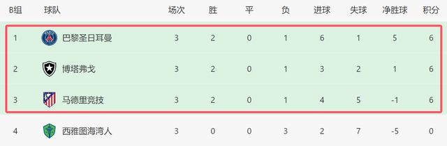 遺憾的是,雖然馬競小組賽迎來2連勝拿到6分,可惜還是沒能小組出線。因為凈勝球少,馬競最終成為第一支被淘汰的豪門球隊。因為最后一輪輸給馬競,博塔弗戈也丟掉了小組第一,大巴黎最后時刻反超,以小組頭名的身份,晉級16強(qiáng)。