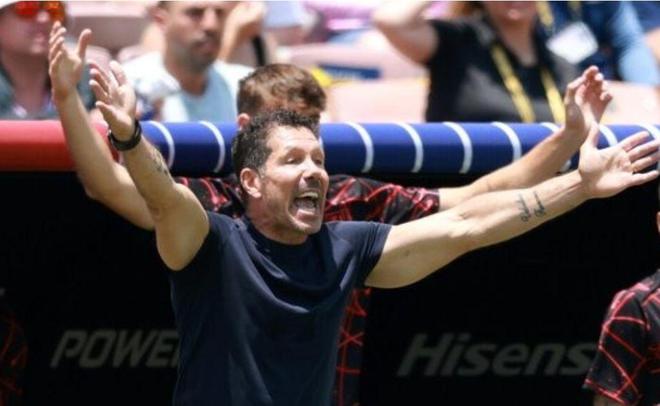 第51分鐘,小西蒙尼在禁區(qū)里突破,又被對方絆了一下,可裁判還是無動于衷。場邊,55歲的西蒙尼高舉手臂,提出抗議。第69分鐘,博塔弗戈球員在禁區(qū)里手球,裁判依舊沒有表示。