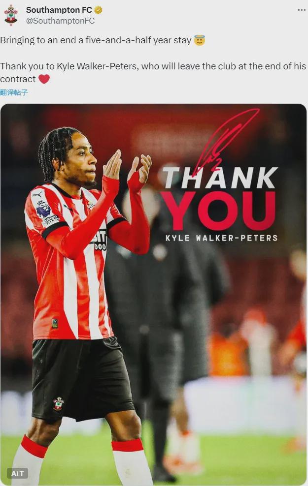 官方:南安普頓確認(rèn)凱爾·沃克-皮特斯將在下周合同到期后離隊(duì)。
