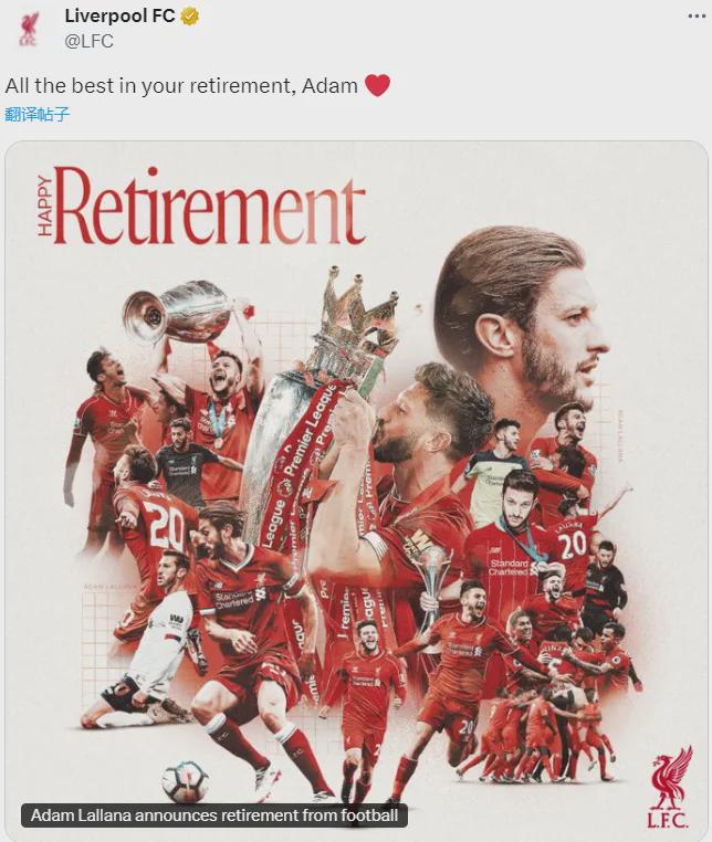 官方:前利物浦球星亞當(dāng)-拉拉納宣布退役。