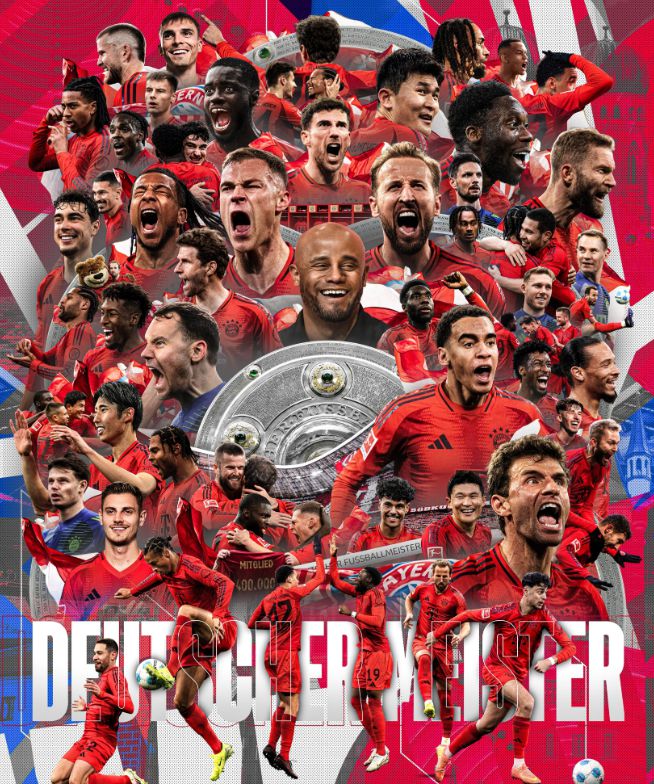 而對(duì)于這個(gè)結(jié)果,最高興的自然還是拜仁;本輪過后德甲只剩下2輪,勒沃庫(kù)森68分排在第2,落后拜仁8分,這意味著拜仁提前獲得本賽季的德甲冠軍。這拜仁時(shí)隔1年后重奪德甲冠軍,他們上次奪冠是22-23賽季,那一年的主帥是圖赫爾。